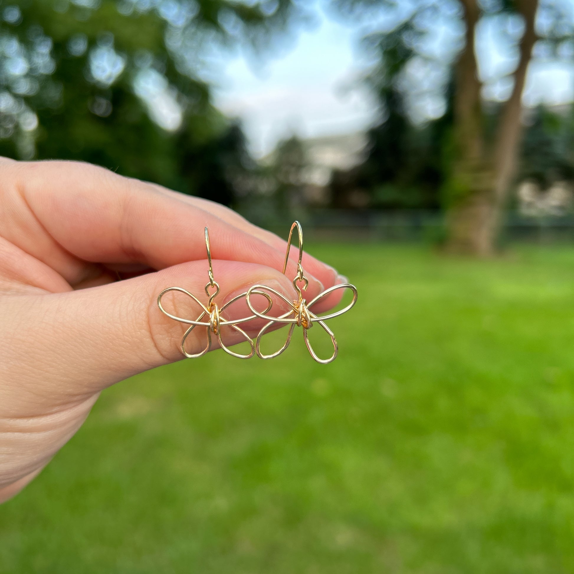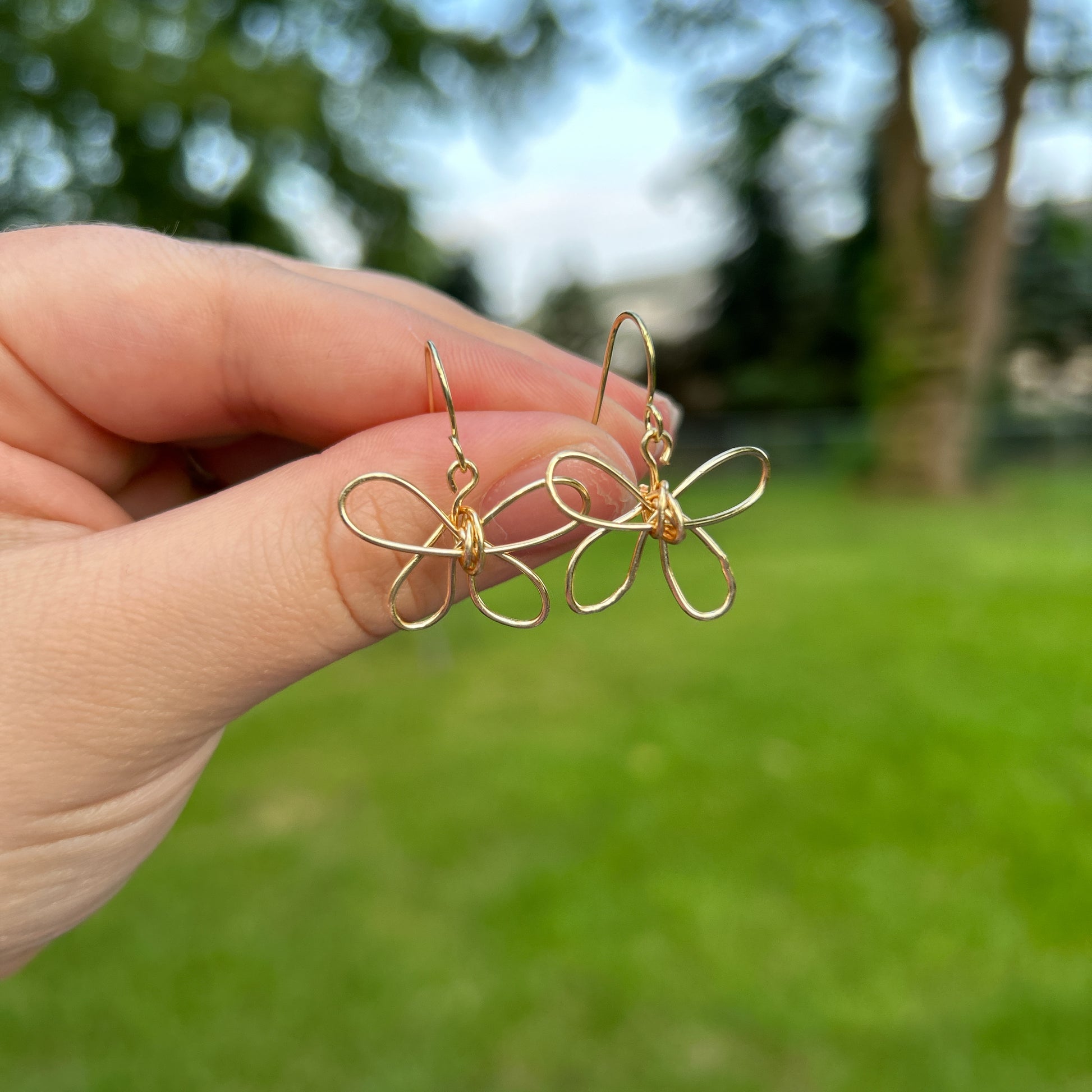 These beautiful gold butterfly earrings are created with tarnish resistant wire. They are lightweight earrings and would make the perfect addition to any look. Dressed up or down.